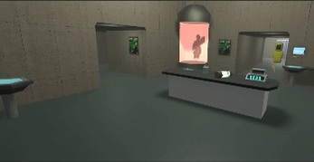 The rescuer, through the VR headset, must navigate various levels of the underground laboratory, solving puzzles to progress. The security guard, watching on the cameras, has access to crucial puzzle information.
